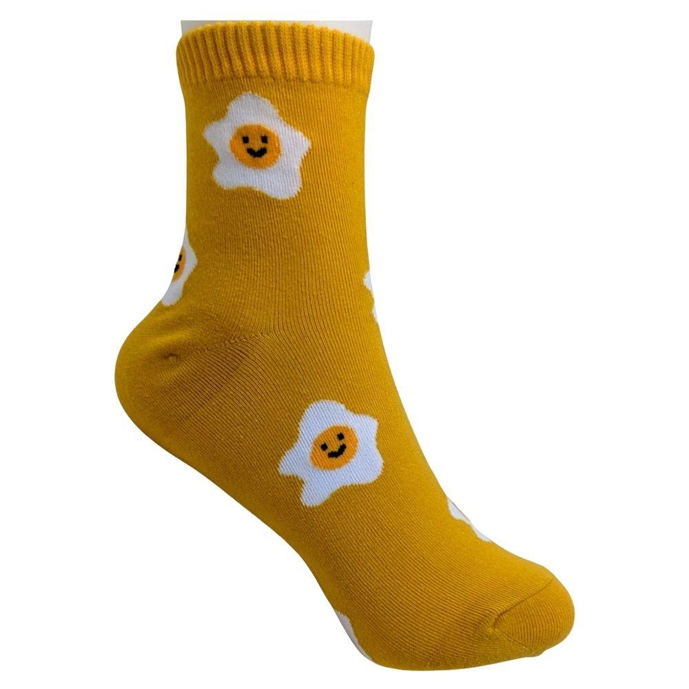 COTTON SMILING SUNNY SIDE UP EGG PATTERN CREW SOCKS