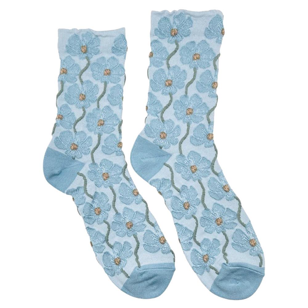 FLORAL PRINT SHEER CREW SOCK