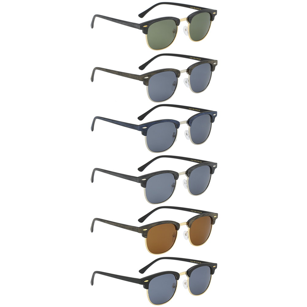 ROUND WOOD TEXTURED SUNGLASSES 1DZ