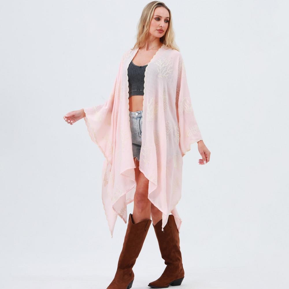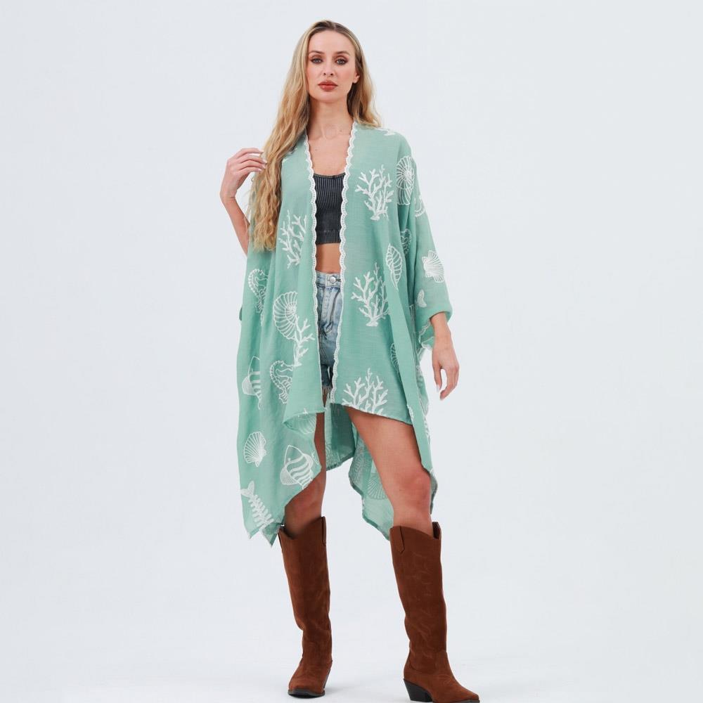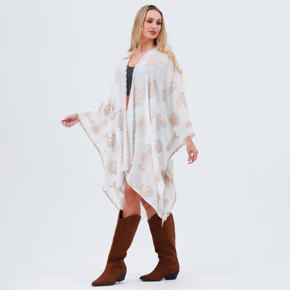 SEAHORSE CORAL SEASHELL EMBROIDERED KIMONO - SPRING SUMMER OCEAN THEME