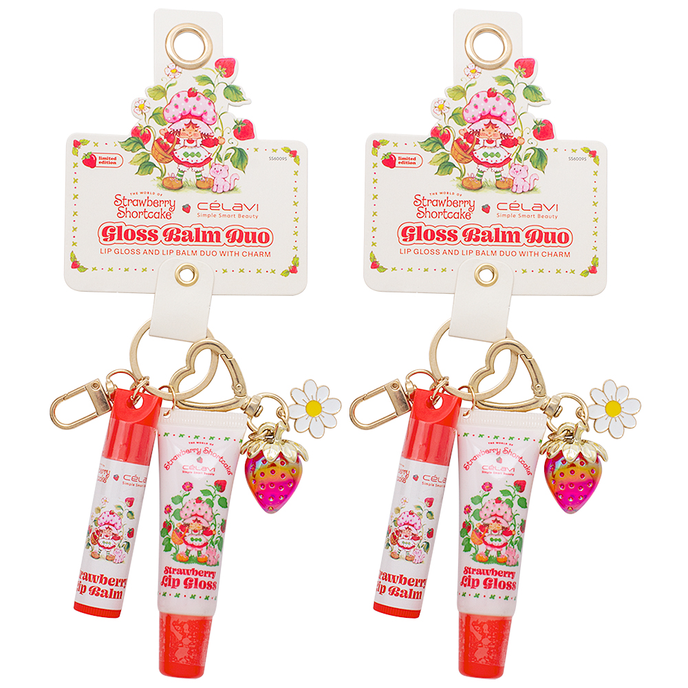 2PC CELAVI STRAWBERRY SHORTCAKE GLOSS BALM DUO WITH KEYCHAIN