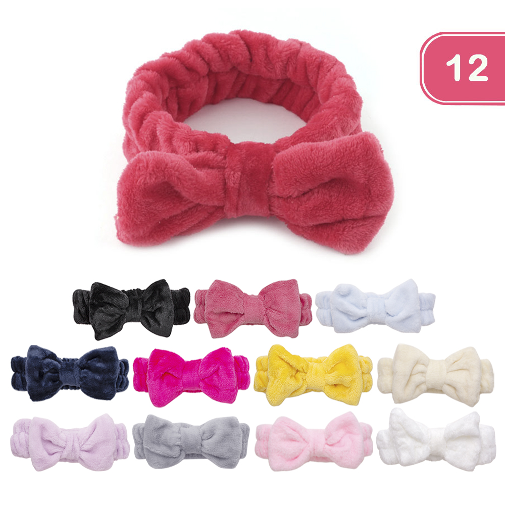 BOW HAIR SOFT FLEECE MAKEUP TURBAN SHOWER SPA HEADBAND (12 UNITS)