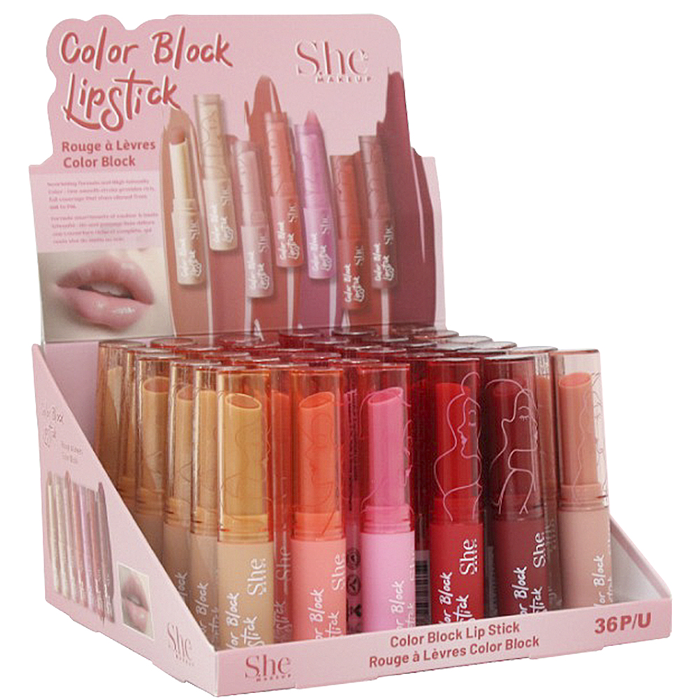 SHE MAKEUP COLOR BLOCK LIPSTICK (36 UNITS)