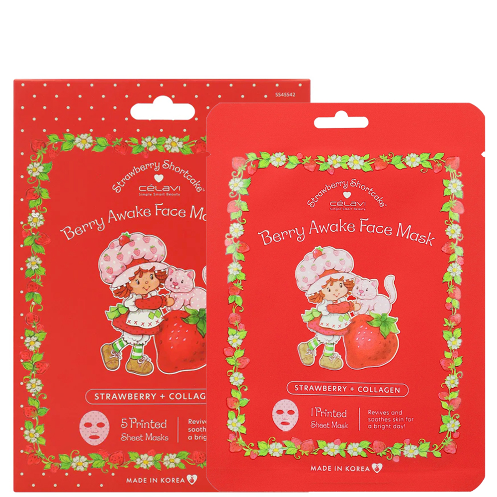 CELAVI 5PC STRAWBERRY SHORTCAKE FACE SHEET MASK SET