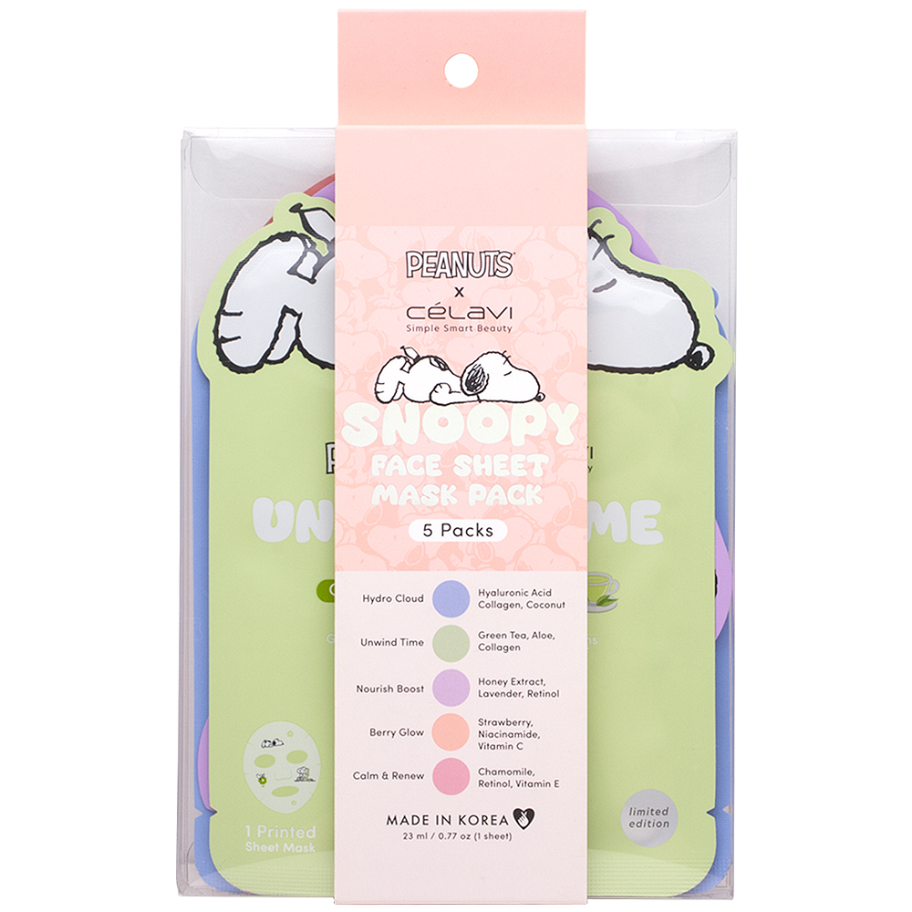 CELAVI X PEANUTS SNOOPYS FACE SHEET MASK 5 PACK