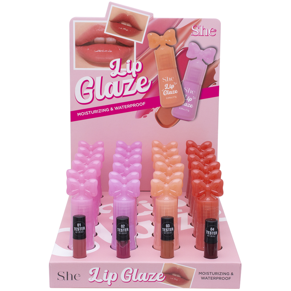 SHE MAKEUP LIP GLAZE W TESTER (24 UNITS)
