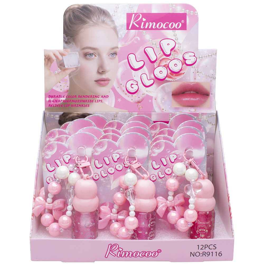 MOISTURIZING LIP GLOSS KEYCHAIN W RIBBON BEAD STRAP (12 UNITS)