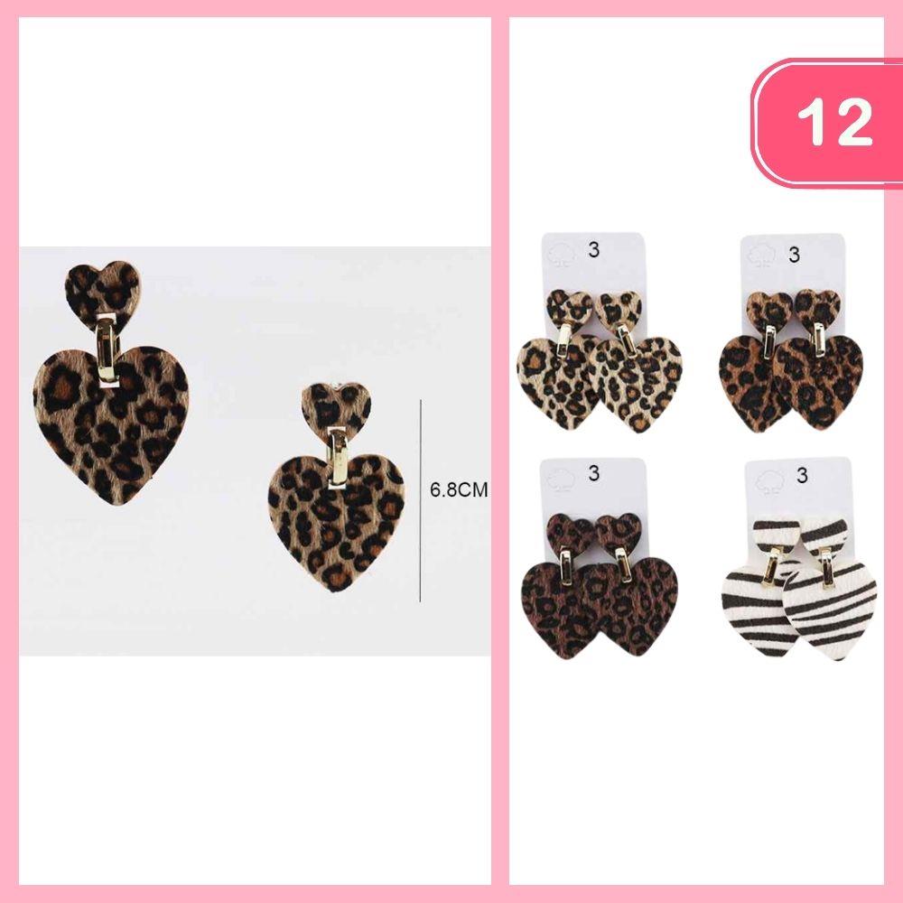 LEOPARD ZEBRA HEART DANGLE EARRING (12 UNITS)