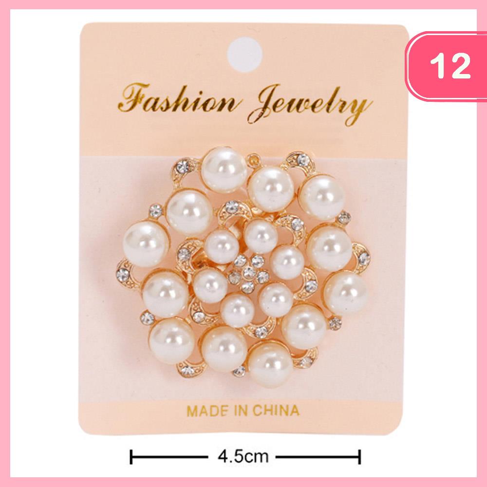 RHINESTONE PEARL BROOCH (12 UNITS)