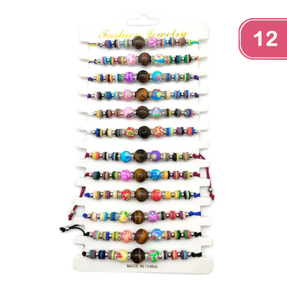 CRYSTAL BEADED STRING BRACELETS (12 UNITS)