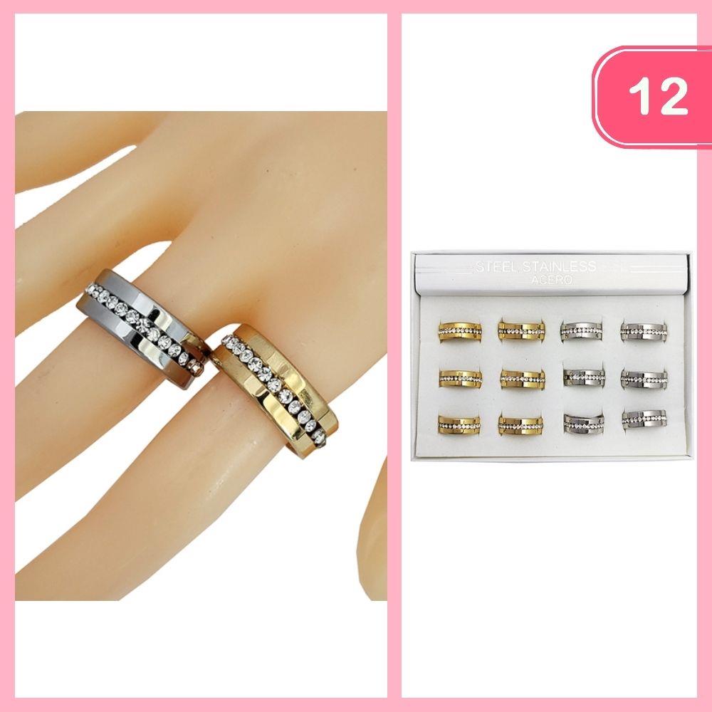 STAINLESS STEEL ACERO RHINESTONE RING (12 UNITS)