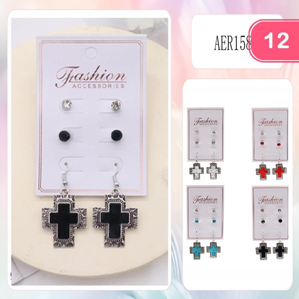 METAL ENAMEL CROSS DANGLE EARRINGS SET (12 UNITS)