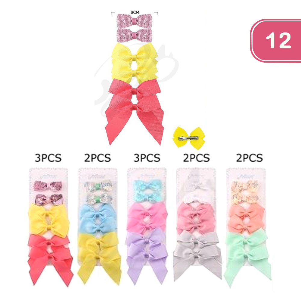 RIBBON HAIR BOW PIN SET (12 UNITS)