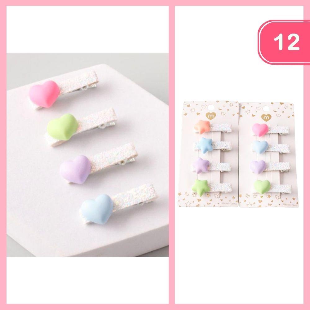 HEART STAR GLITTER CLIPS SET ( 12 UNITS)