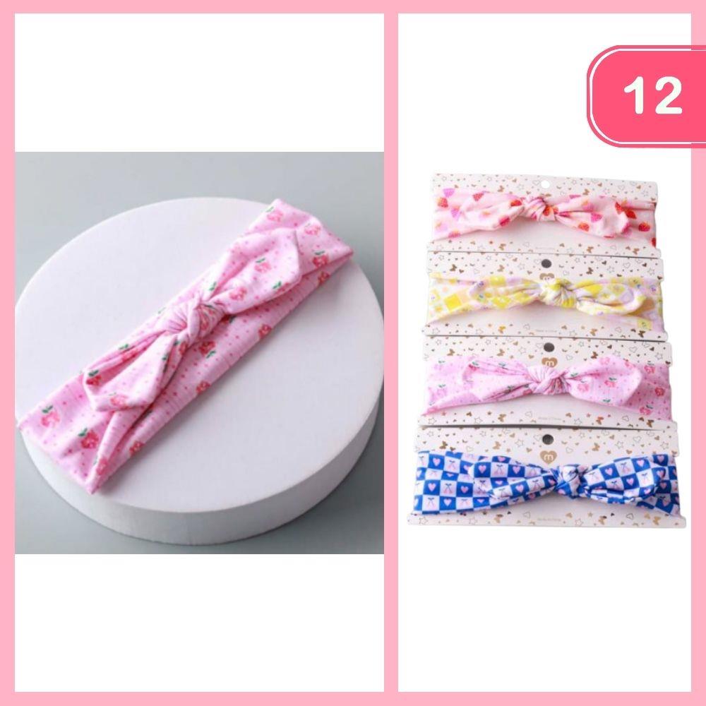 CUTE HEART CHERRY BOW SILK LIKE KNOTTED HEADBAND (12 UNITS)