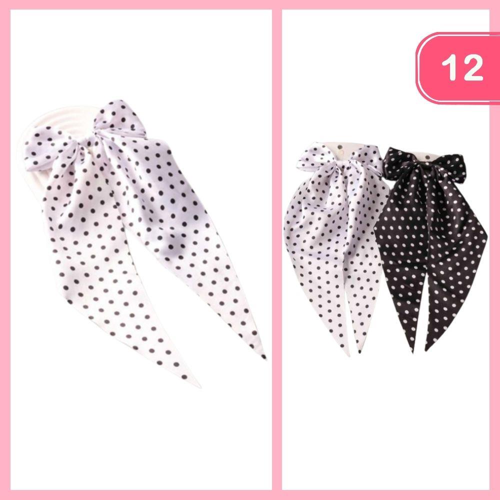POLKA DOT LONG TAIL HAIR BOW (12 UNITS)