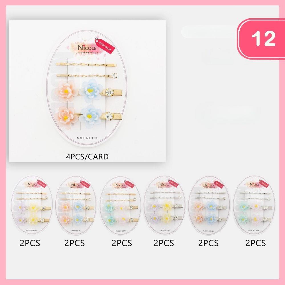 RHINESTONE FLOWER HAIR PINS (12 UNITS)