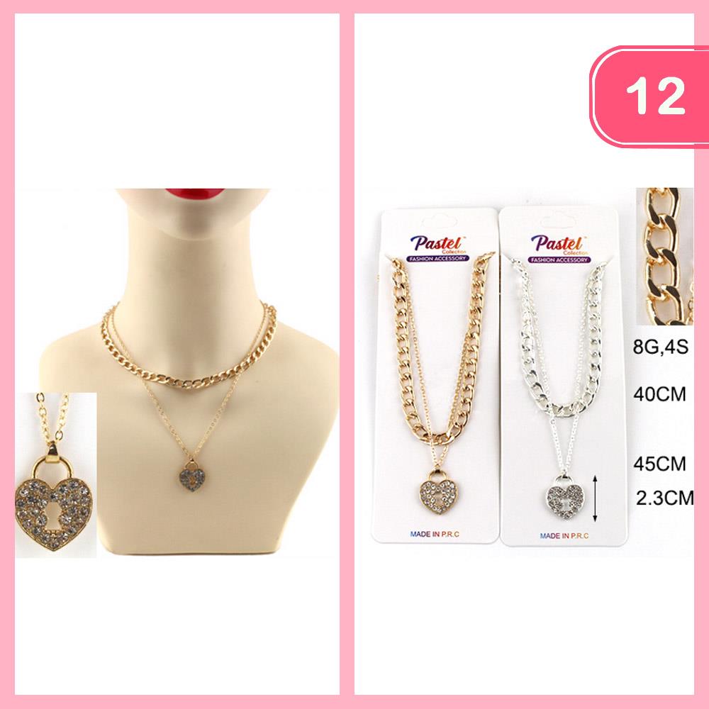 LAYERED RHINESTONE HEART PENDANT NECKLACE (12 UNITS)