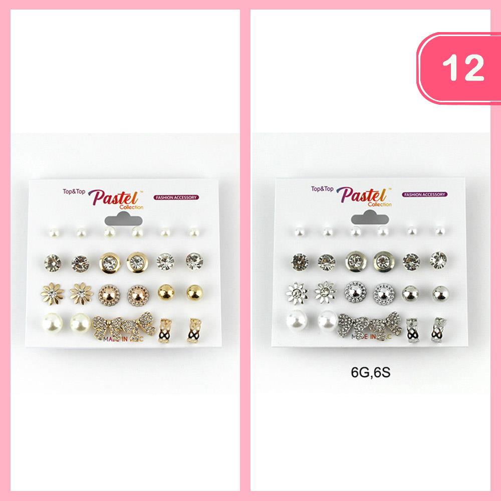 MIXED STUD PEARL RHINESTONE EARRINGS (12 UNITS)