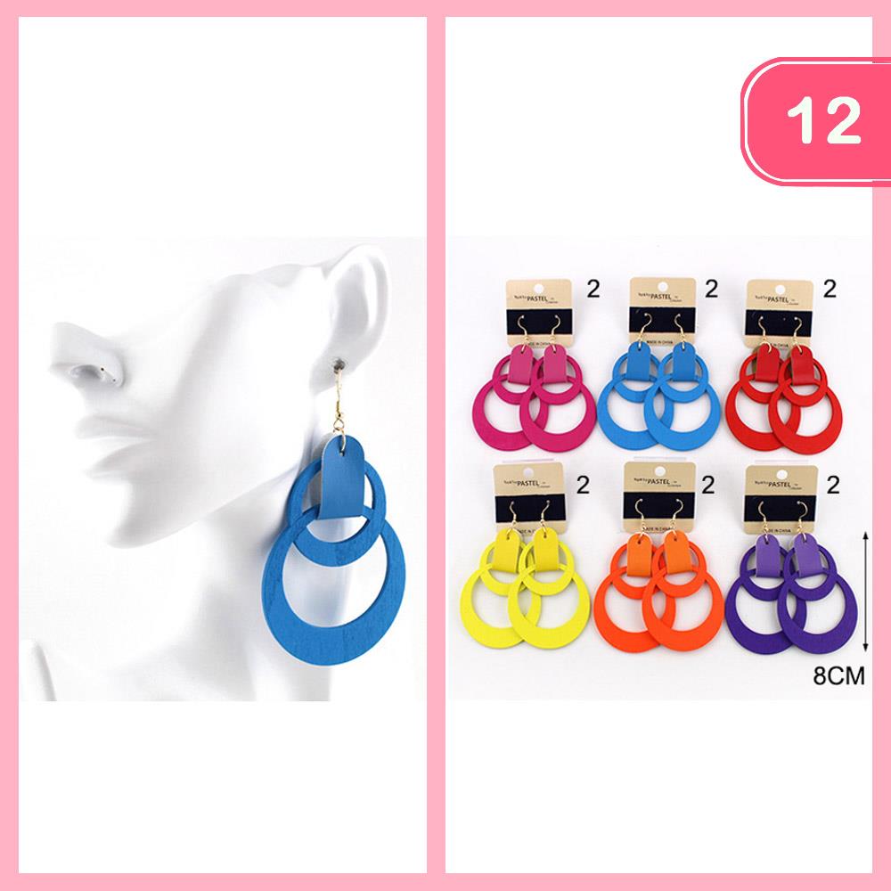 WOODEN DOUBLE HOOP DANGLE EARRINGS (12 UNITS)