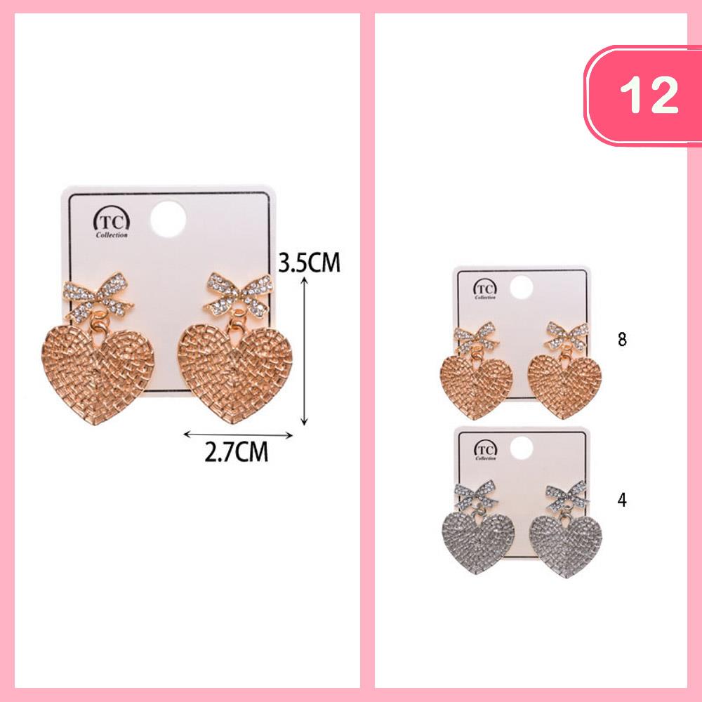 RHINESTONE BOW HEART EARRINGS (12 UNITS)