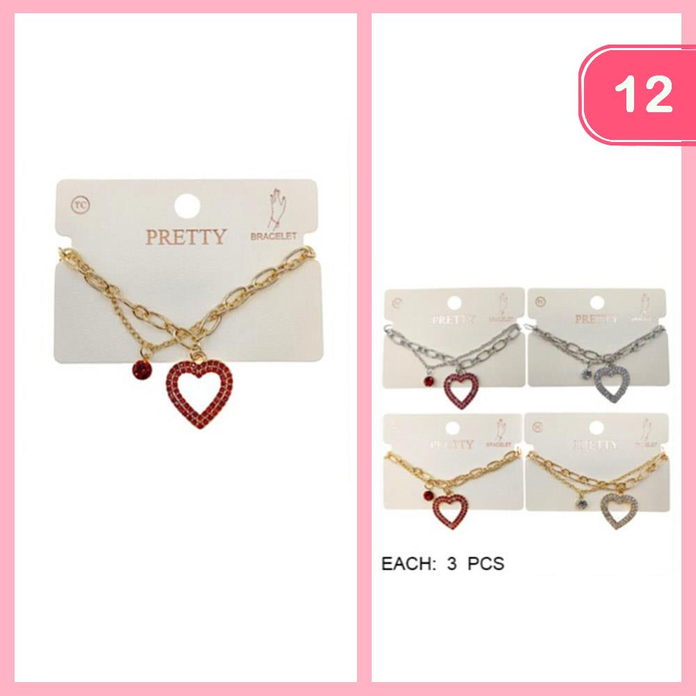 RHINESTONE BOW HEART PEDANT BRACELET (12 UNITS)