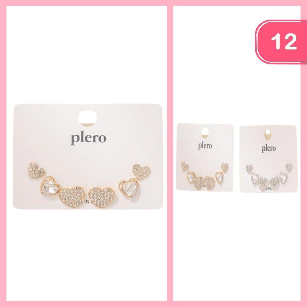 RHINESTONE HEART EARRING SET (12 UNITS)