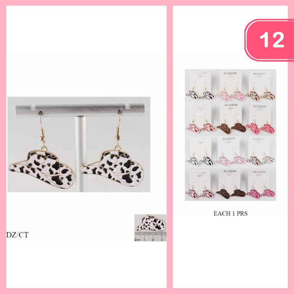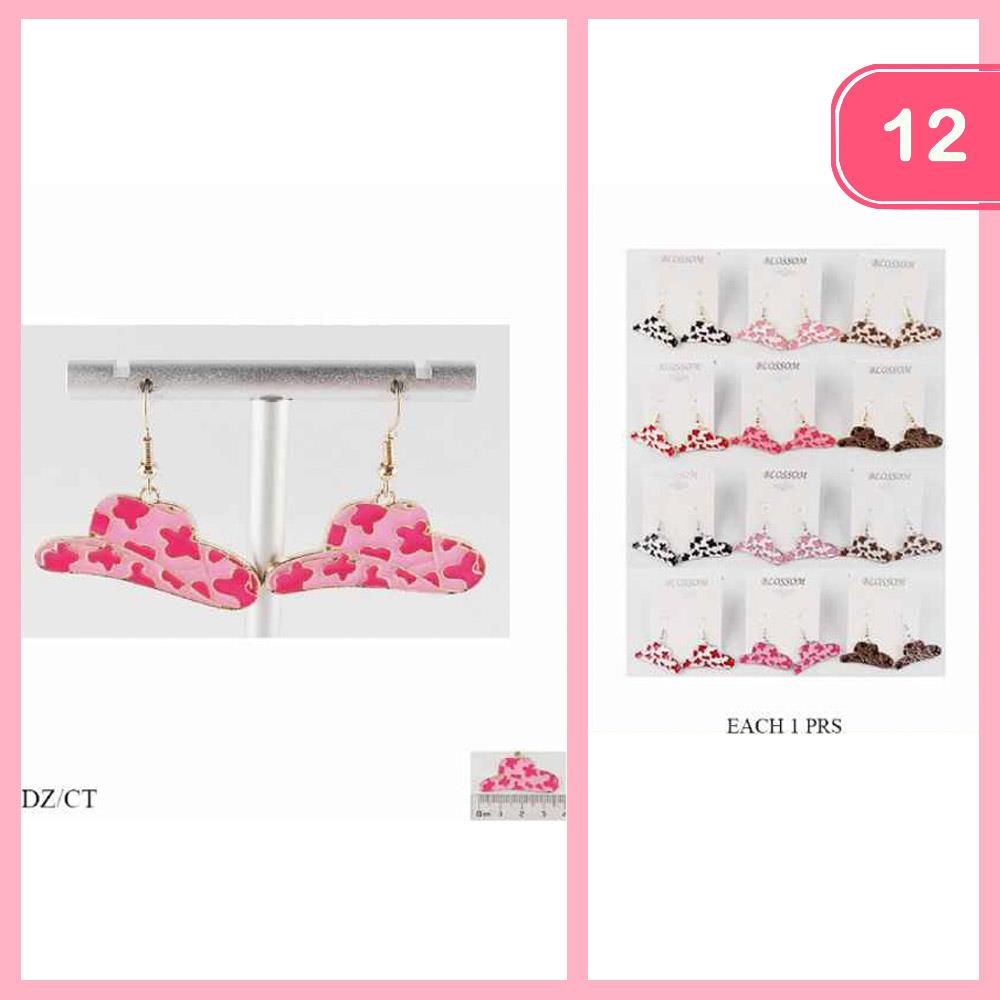 WESTERN COW PRINT HAT DANGLE EARRING (12 UNITS)