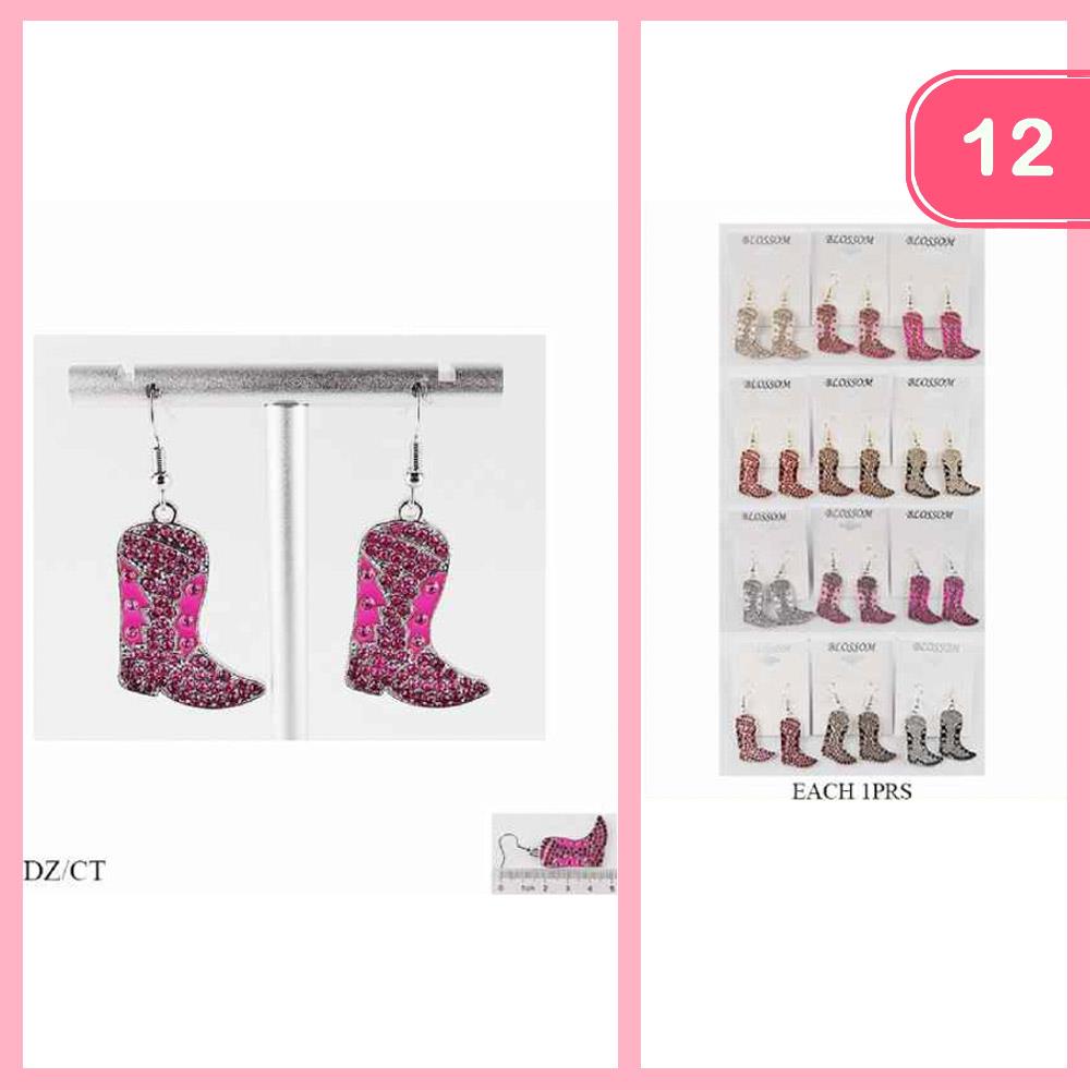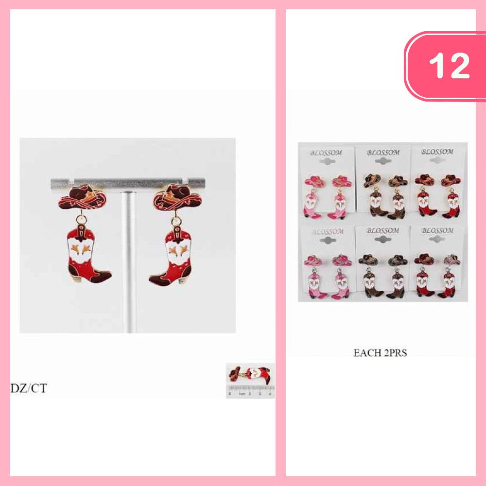 RHINESTONE WESTERN HAT BOOTS DANGLE EARRING (12 UNITS)
