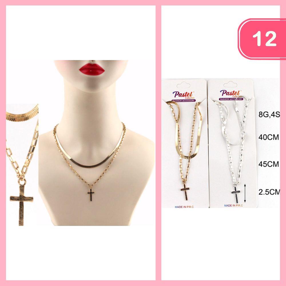 STAINLESS STEEL RHINESTONE CROSS NECKLACE (12 UNITS)