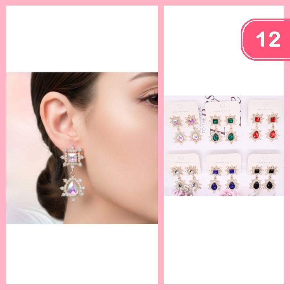 RHINESTONE POST DANGLE EARRINGS (12 UNITS)