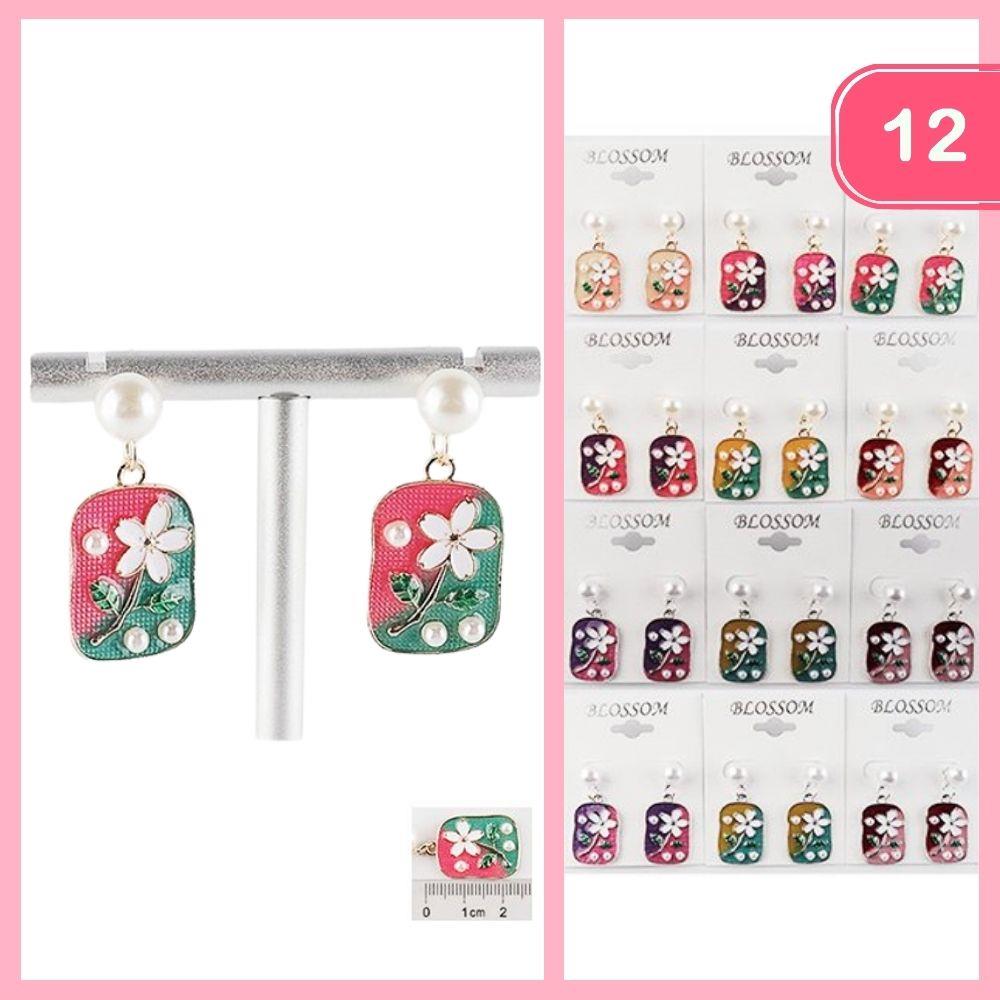 ENAMEL FLOWER PAINT FRAME DANGLE EARRINGS (12 UNITS)