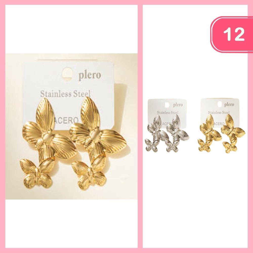 BUTTERFLY RHINESTONE POST HOOP EARRINGS (12 UNITS)