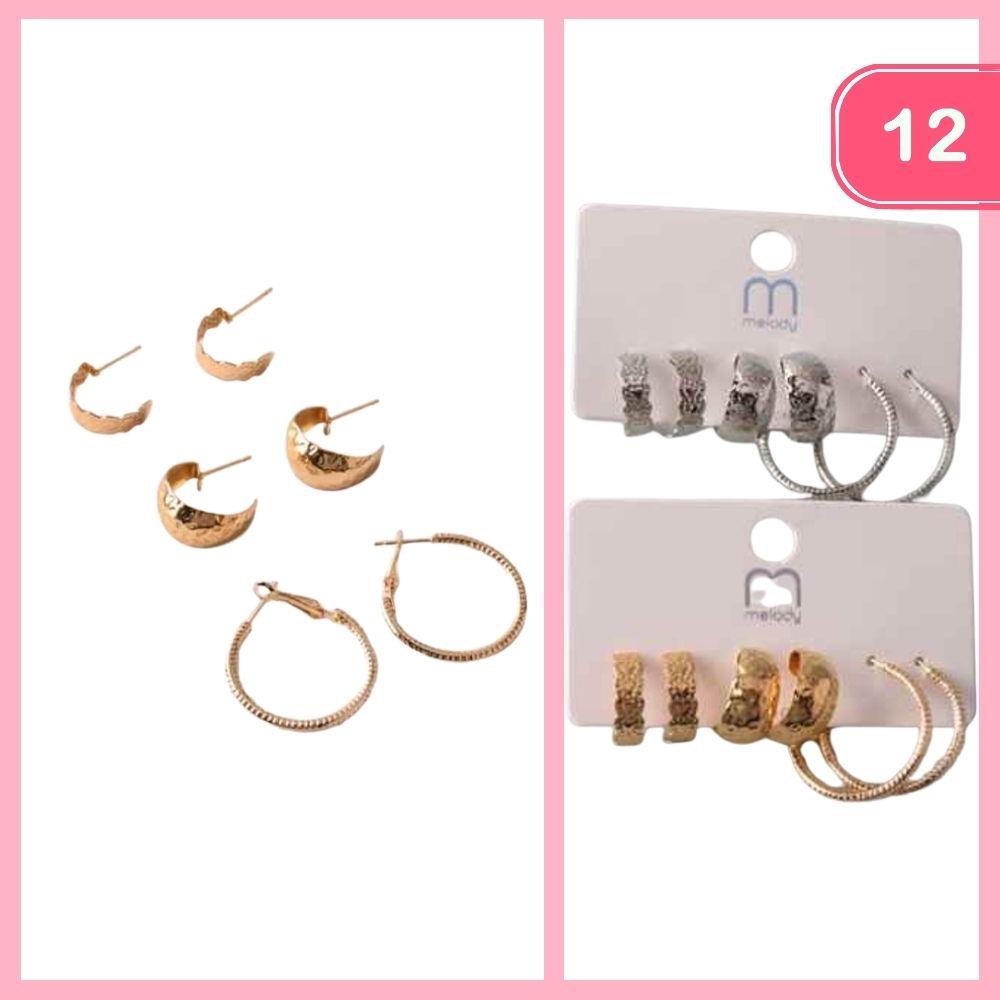 TEXTURED CONCHO HOOP EARRINGS SET (12 UNITS)
