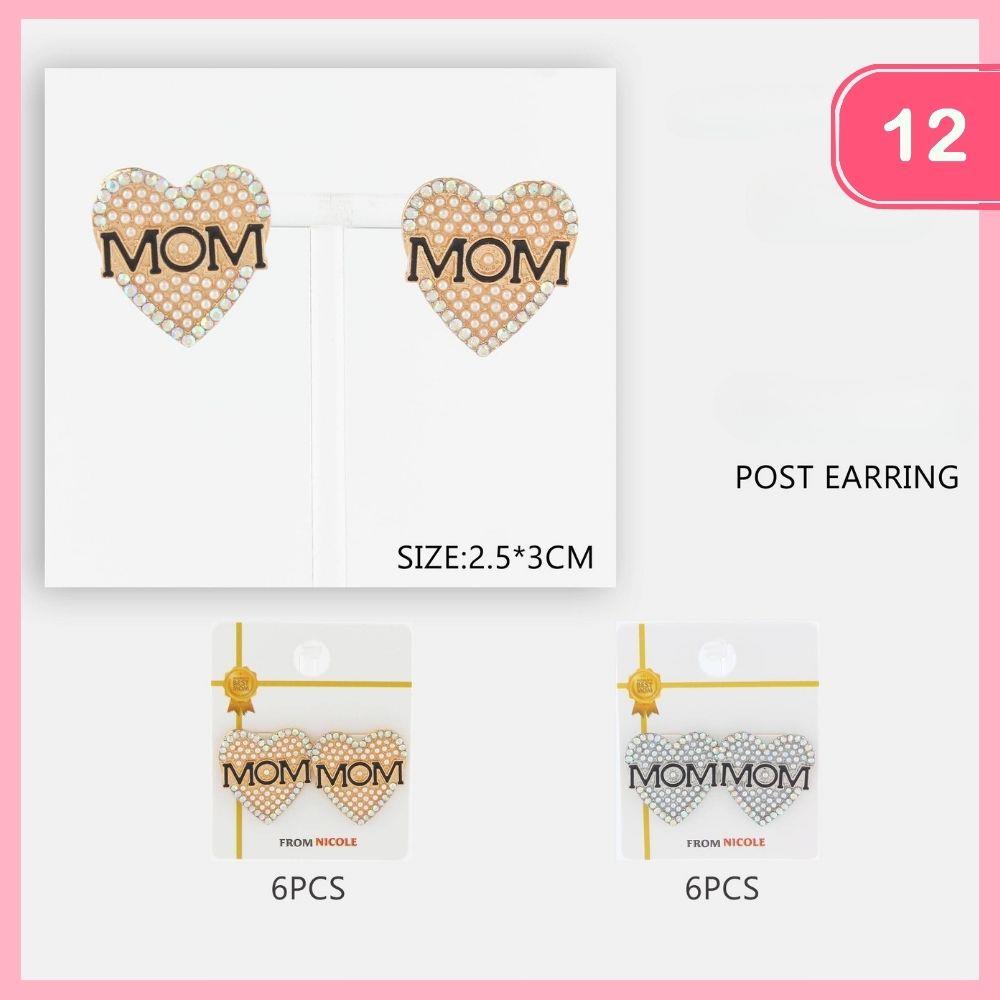 RHINESTONE HEART MOM POST EARRING (12 UNITS)
