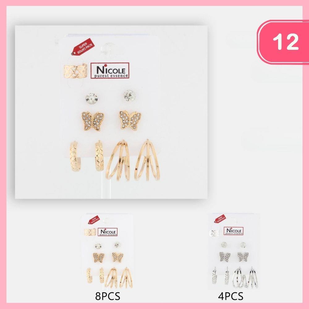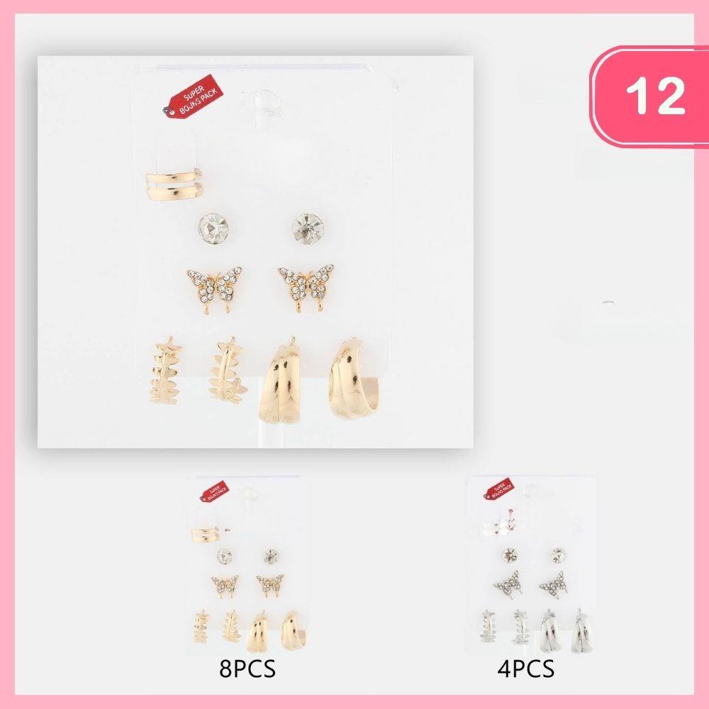 STUD BUTTERFLY RHINESTONE HOOP EARRING SET (12 UNITS)