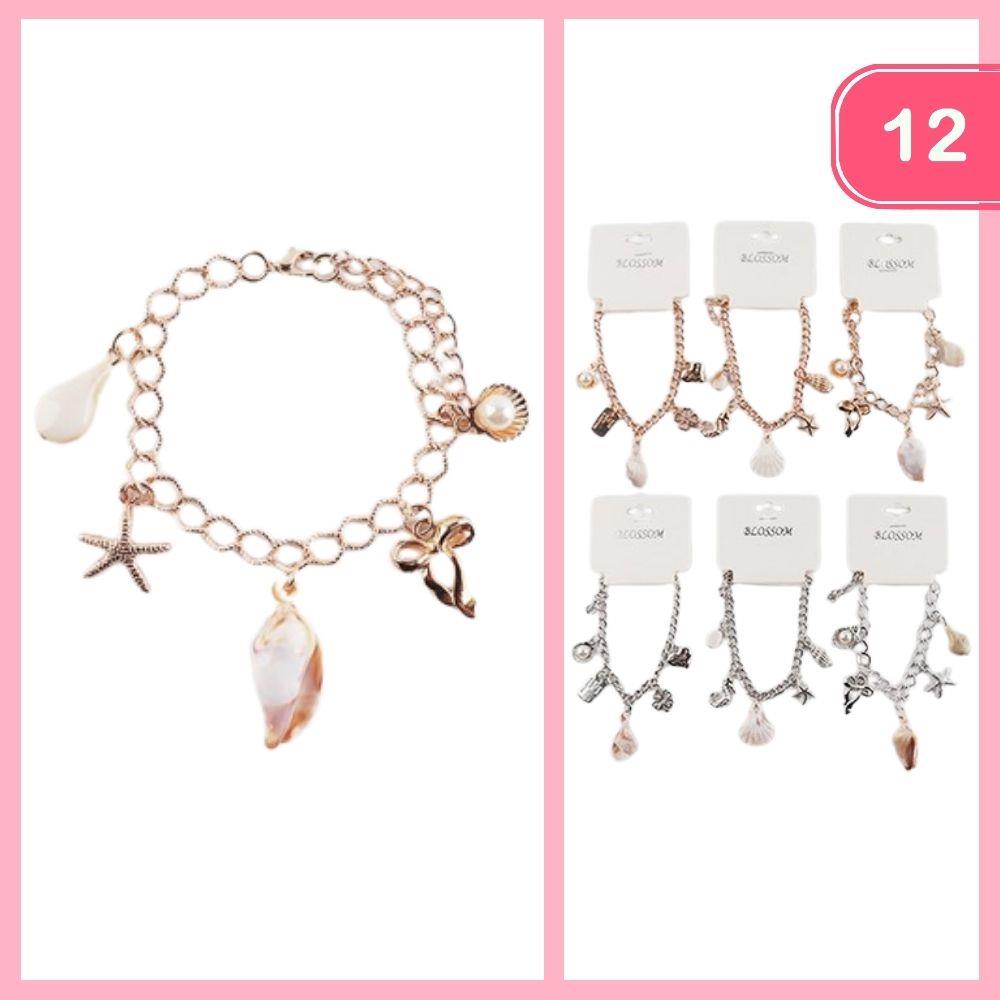 SEA SHELLS BOW CHARM BRACELET (12 UNITS)
