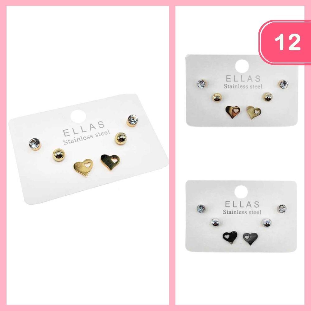 STAINLESS STEEL HEART EARRINGS (12 UNITS)