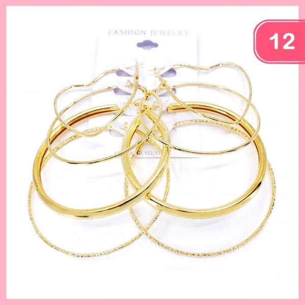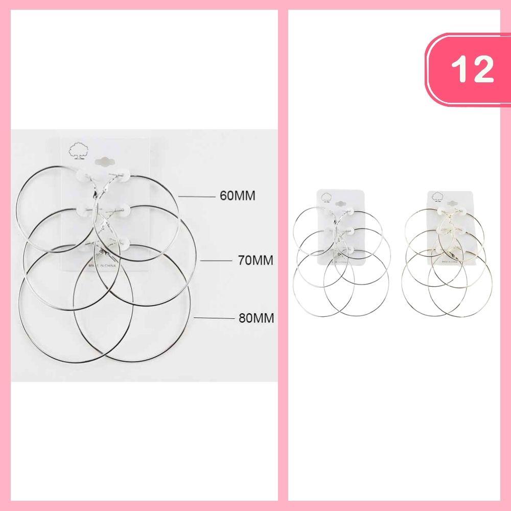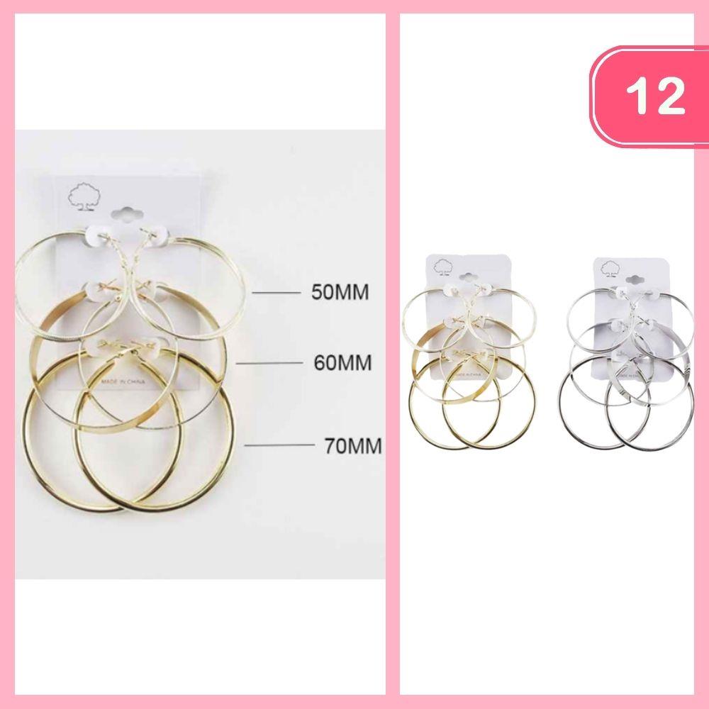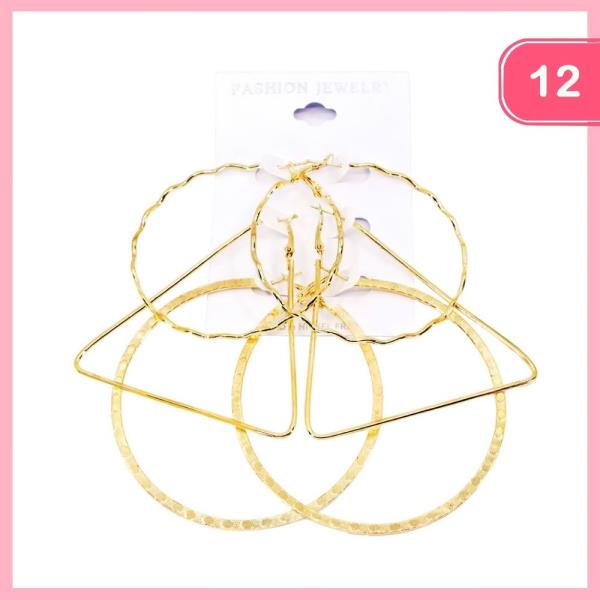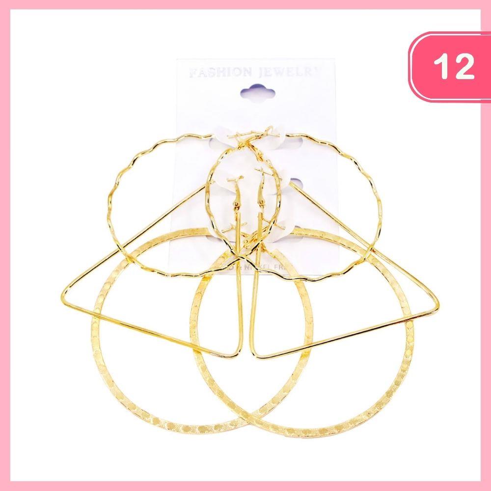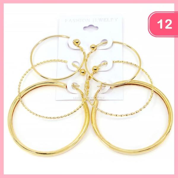 METAL HOOP EARRING 3 PAIR SET (12 UNITS)