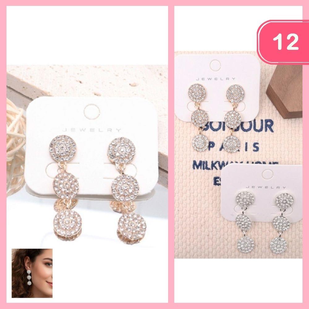 ROUND RHINESTONE DANGLE EARRINGS (12 UNITS)
