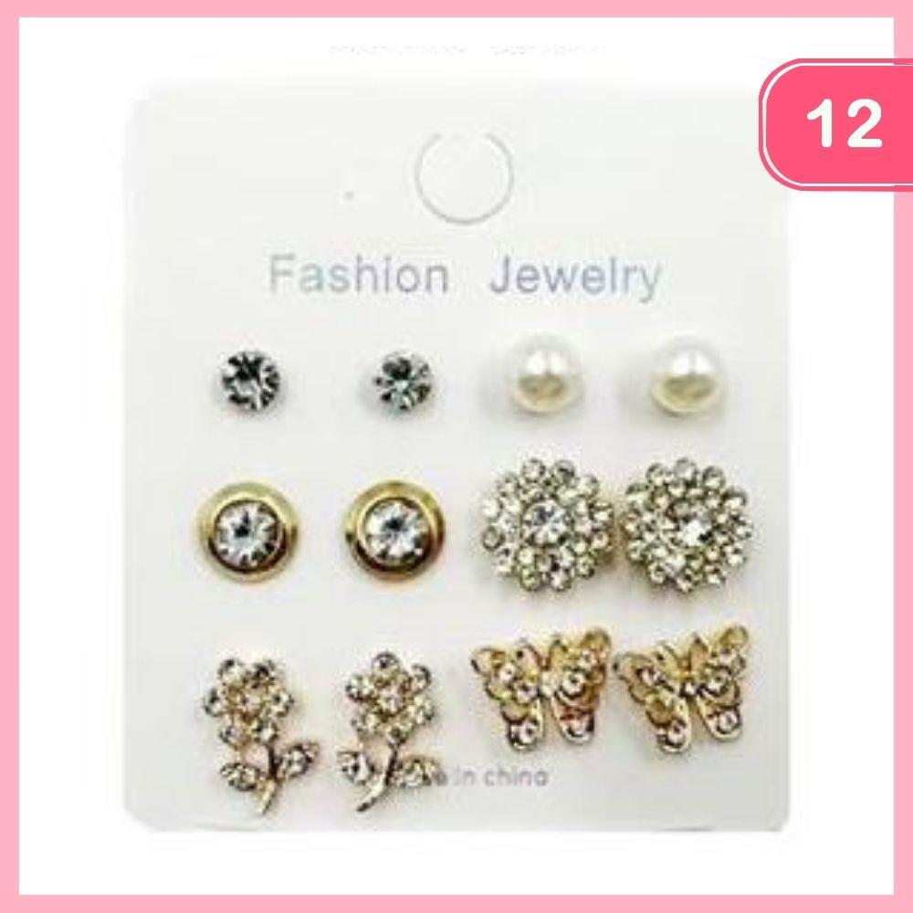 MIXED BUTTERFLY FLOWER PEARL RHINESTONE POST EARRING (12 UNITS)