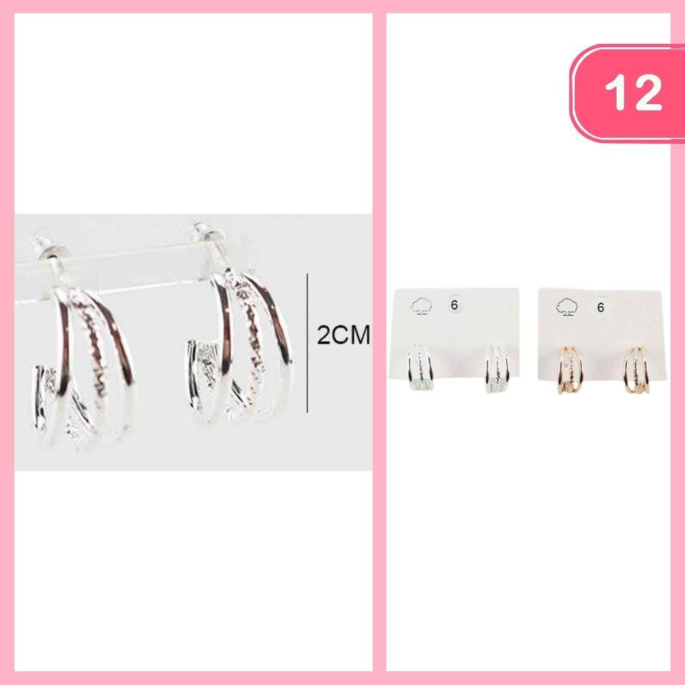 METAL MULTI HOOP EARRING 3 PAIR SET (12 UNITS)
