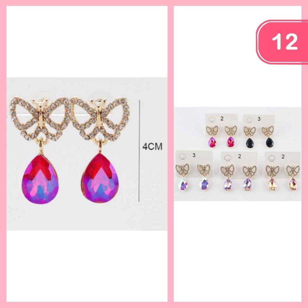RHINESTONE BUTTERFLY ROUND DANGLE EARRING (12 UNITS)