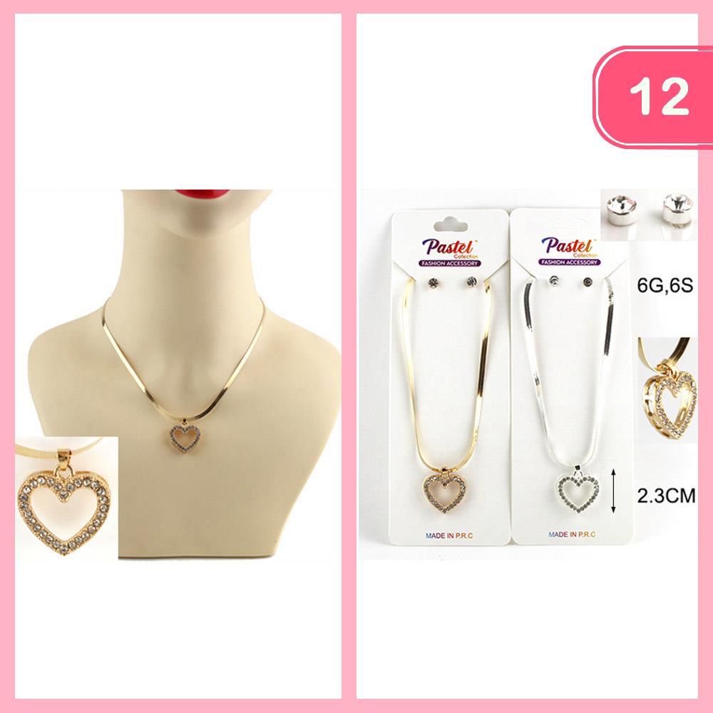 RHINESTONE HEART PENDANT EARRING SET NECKLACE (12 UNITS)