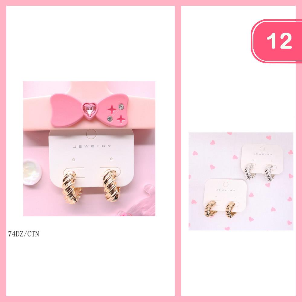 METAL TEXTURED TWISTED EARRINGS (12 UNITS)