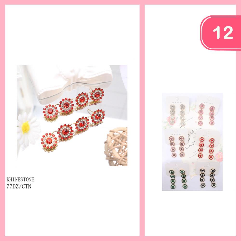 RHINESTONE CLIP ON EARRINGS (12 UNITS)