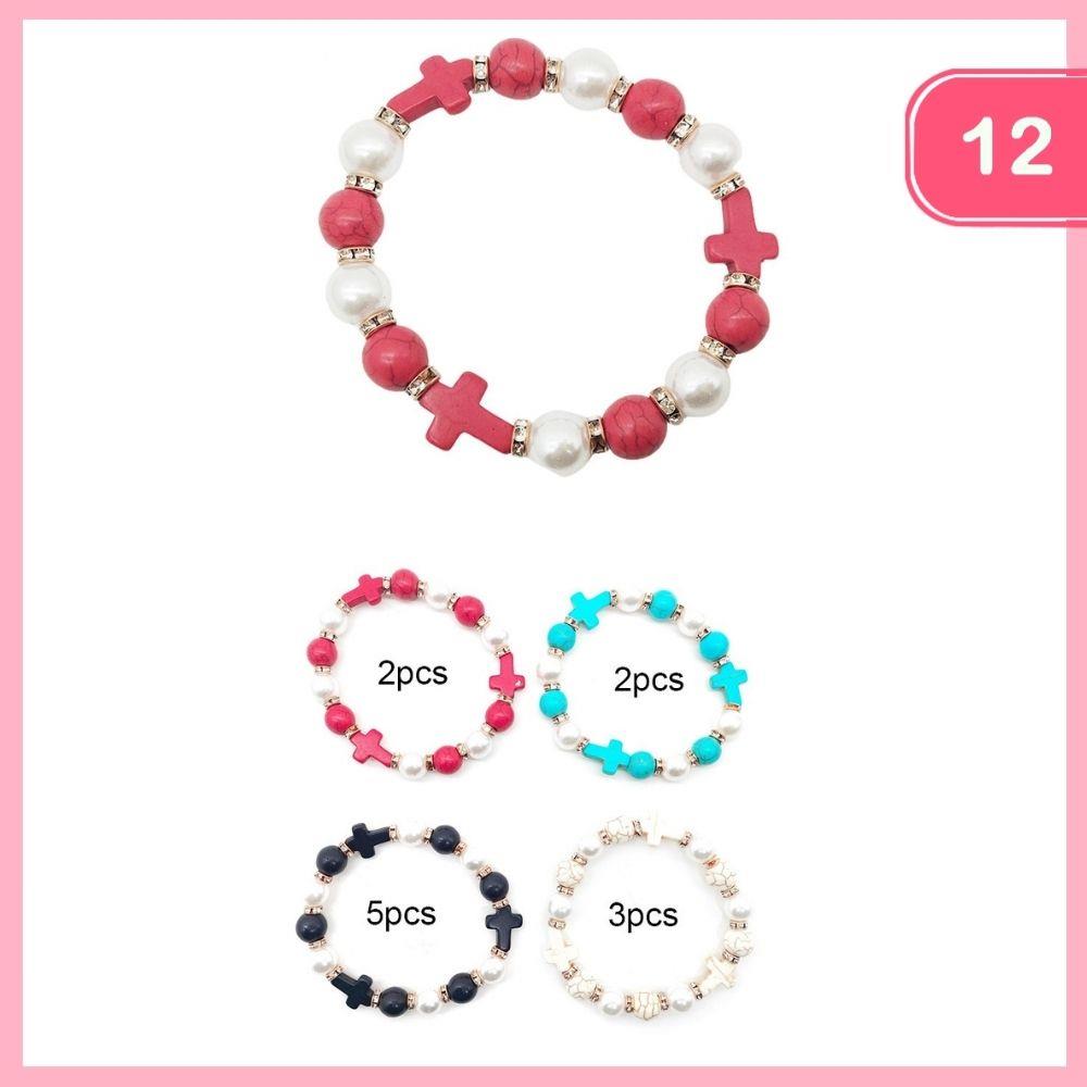 CROSS CHARM BEADED BRACELET (12 UNITS)