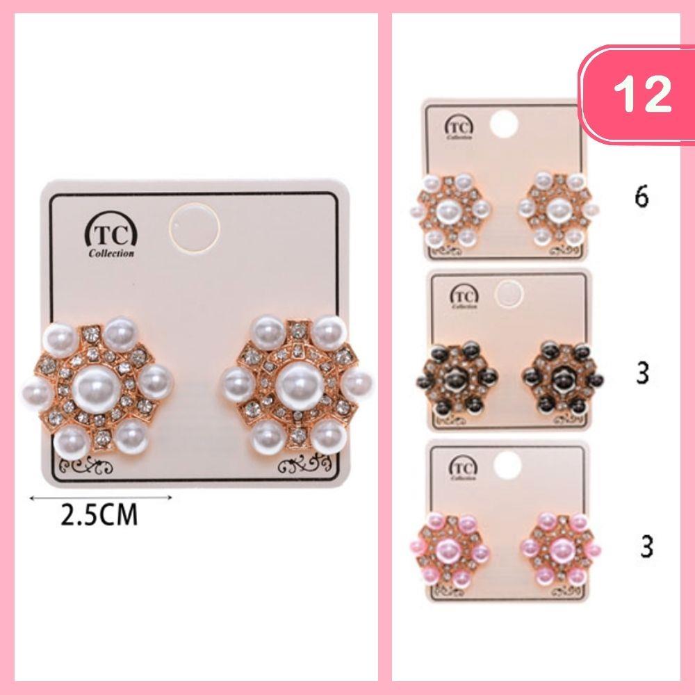 ROUND RHINESTONE PEARL POST EARRING (12 UNITS)