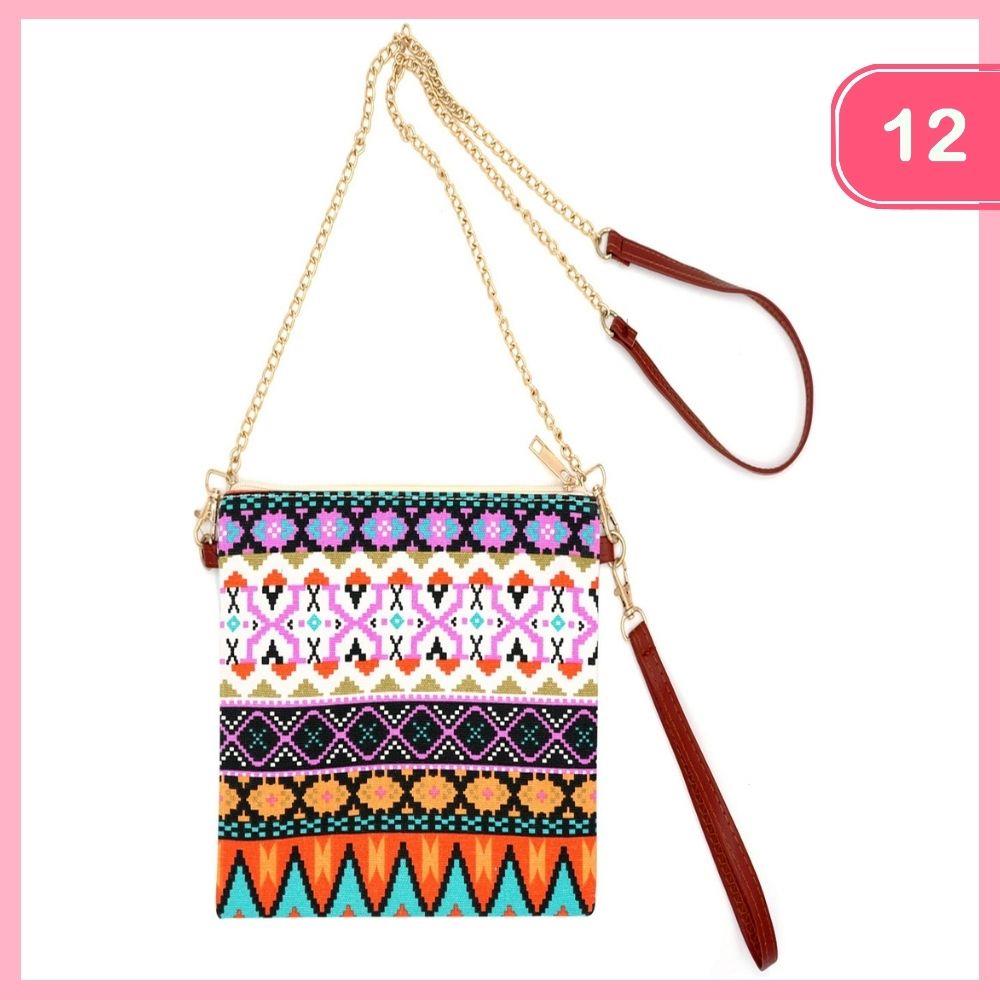 (12 PCS PACKAGE) AZTEC CROSSBODY & WRISTLET BAG.