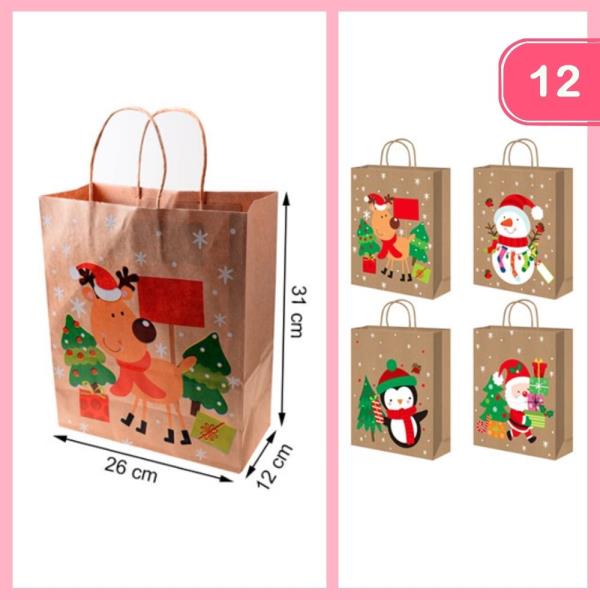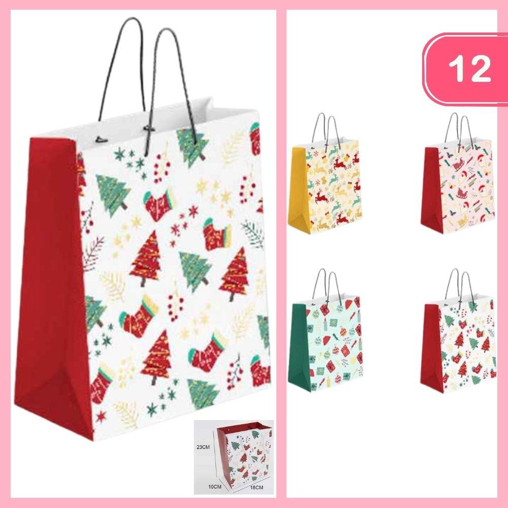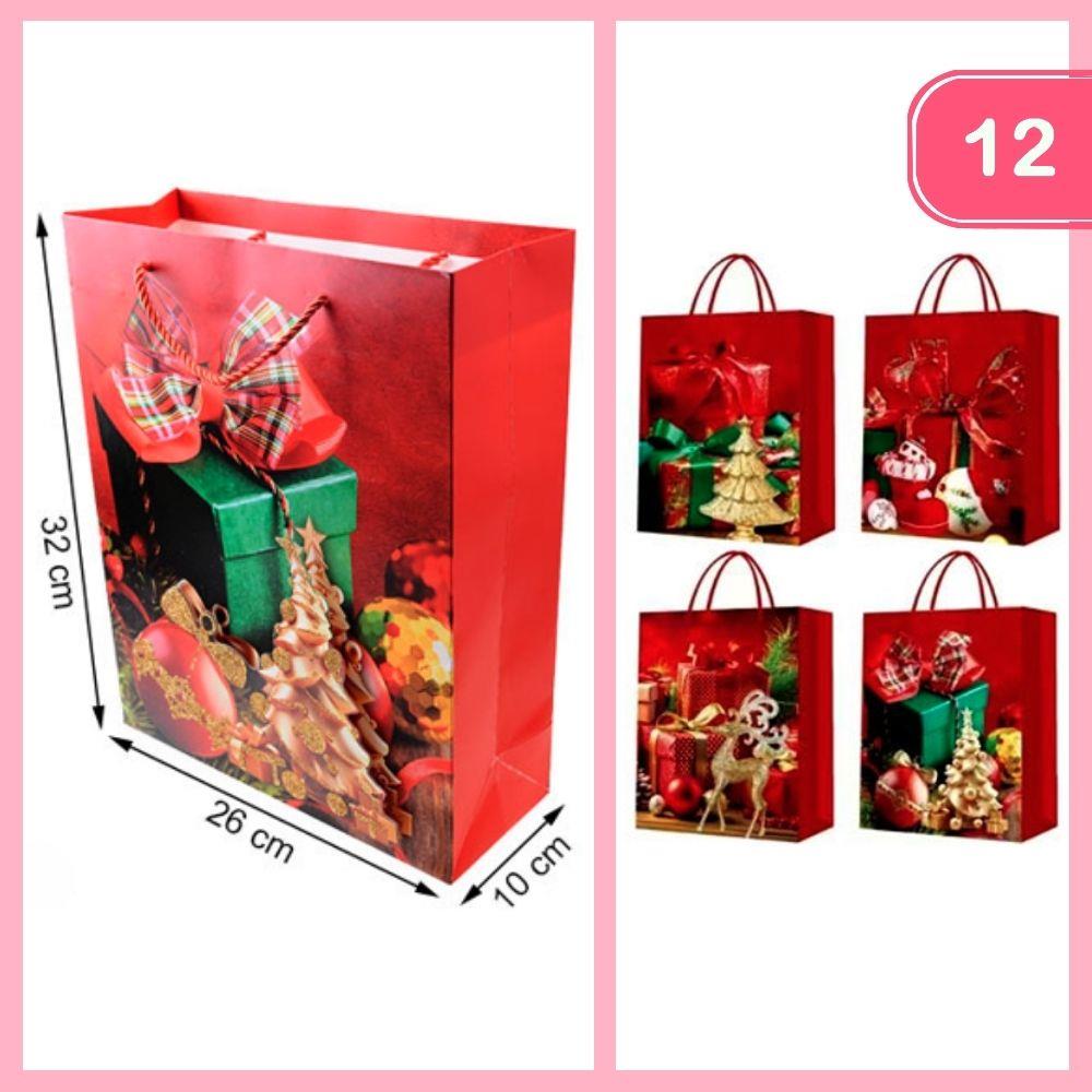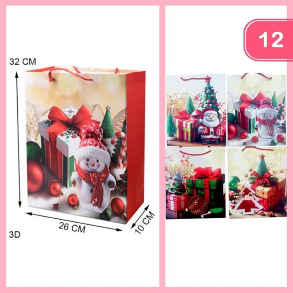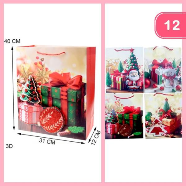 GLITTER CHRISTMAS GIFT BAG (12 UNITS)